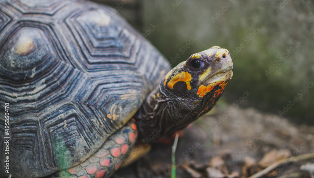 Foto Stock Adult Cherry Head Red Footed Tortoise Geochelone Carbonaria Adobe Stock