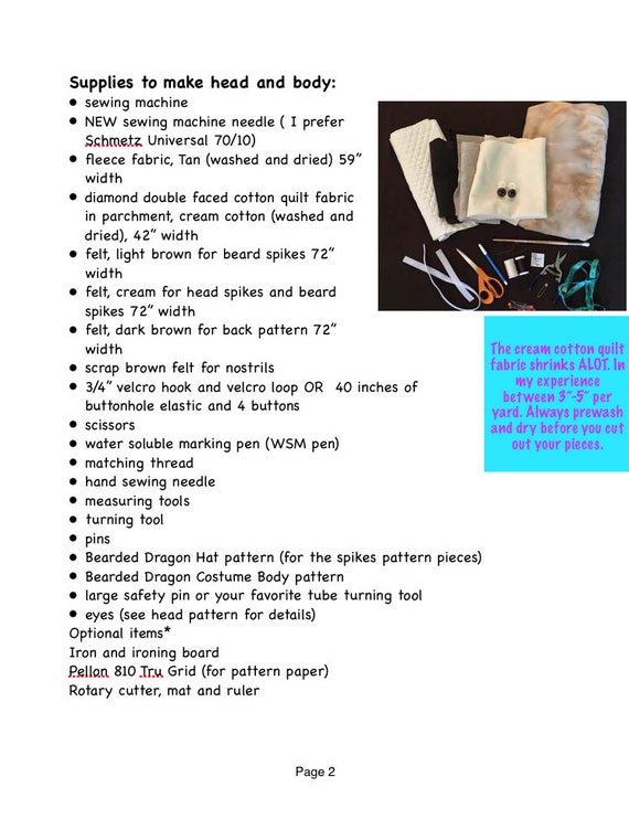 Diy Bearded Dragon Costume Pdf Printable Sewing Pattern And Etsy
